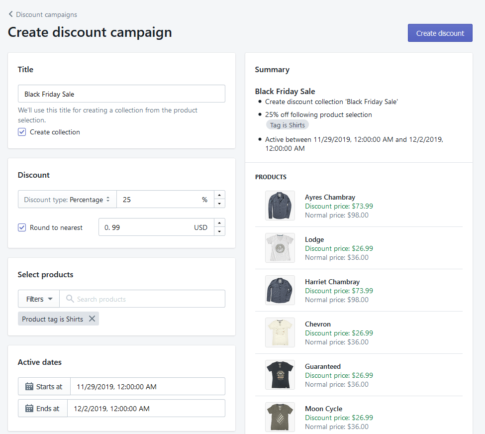 Finally, when you are done, hit the Create discount button in the upper right corner.